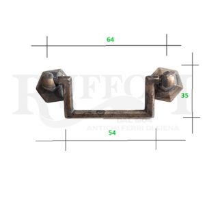 Maniglia per mobili antichi profilo esagonale – Ottone anticato – Interasse 64