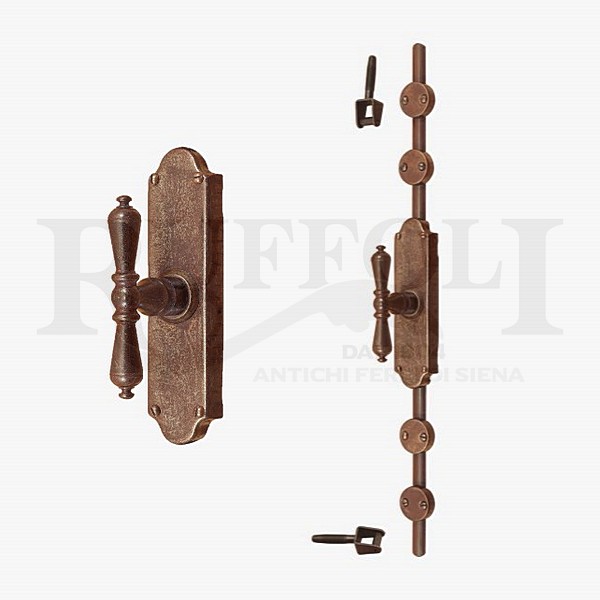 Maniglia rustica a cremonese in ferro anticato per finestre , completa di n°1 asta 1500 mm,