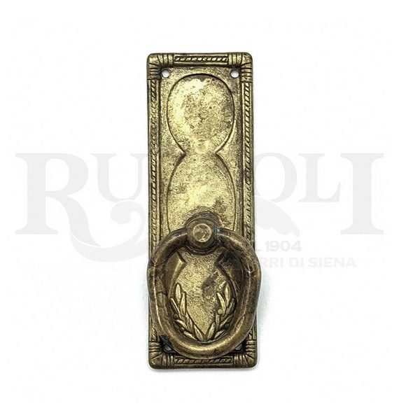 Maniglia completa di bocchette per chiavi Patent. La finitura ottone naturale, con l’uso acquista una colorazione leggermente brunita tipica delle maniglie antiche